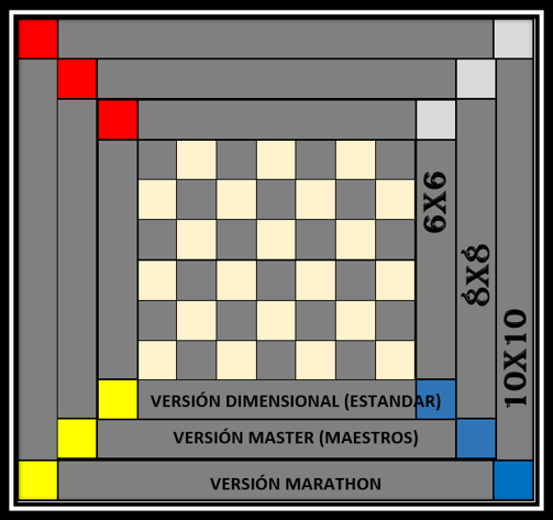 El tablero de 6x6 es la versión más sencilla y la de 8x8 la más compleja.